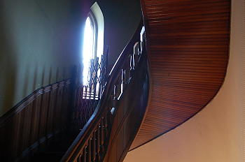 The vestibule provides a desirable space transition from the street to the nave of the church. Of particular note in the vestibule are the spiral staircases on the north and south walls that go to the galleries. These staircases are most unusual.  Also of note are the two stained glass windows in the east wall, one of St. Peter and the other of St. Paul, and the stained glass windows that separate the vestibule from the main part of the church. These windows depict the seven sacraments.